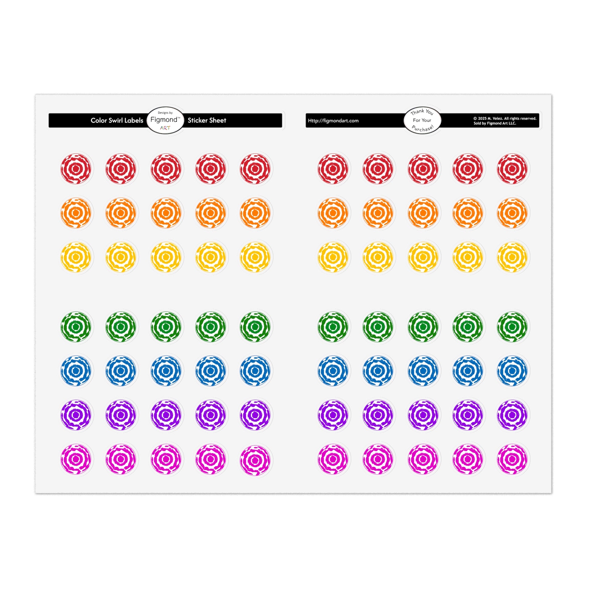 Color Swirl Labels Sticker Sheet Bundle, 5pcs